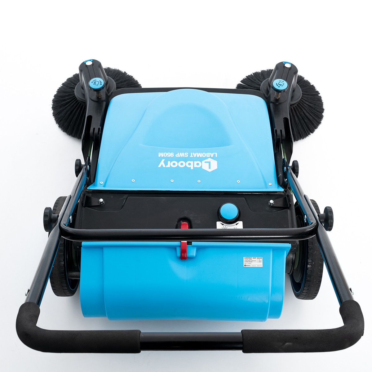 The Labomat 950M sweeper is suitable for cleaning indoor and outdoor areas larger than approximately 3,000 square meters. With its side brushes, it has a 95 cm working width and is a rear-push, compact, and very easy-to-move sweeper. The side brushes make cleaning corners and along walls easy. The front and side covers also play an important role in preventing dust from rising during operation.