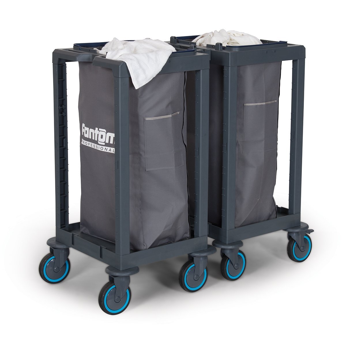 Preferred for laundry collection in hotels, hospitals, schools, dormitories, residences, and restaurants thanks to its practical and user-friendly design. Its easily maneuverable, silent, bumper-protected, and brake-equipped wheels ensure durability against impacts. The braking system allows stable positioning on inclined surfaces.