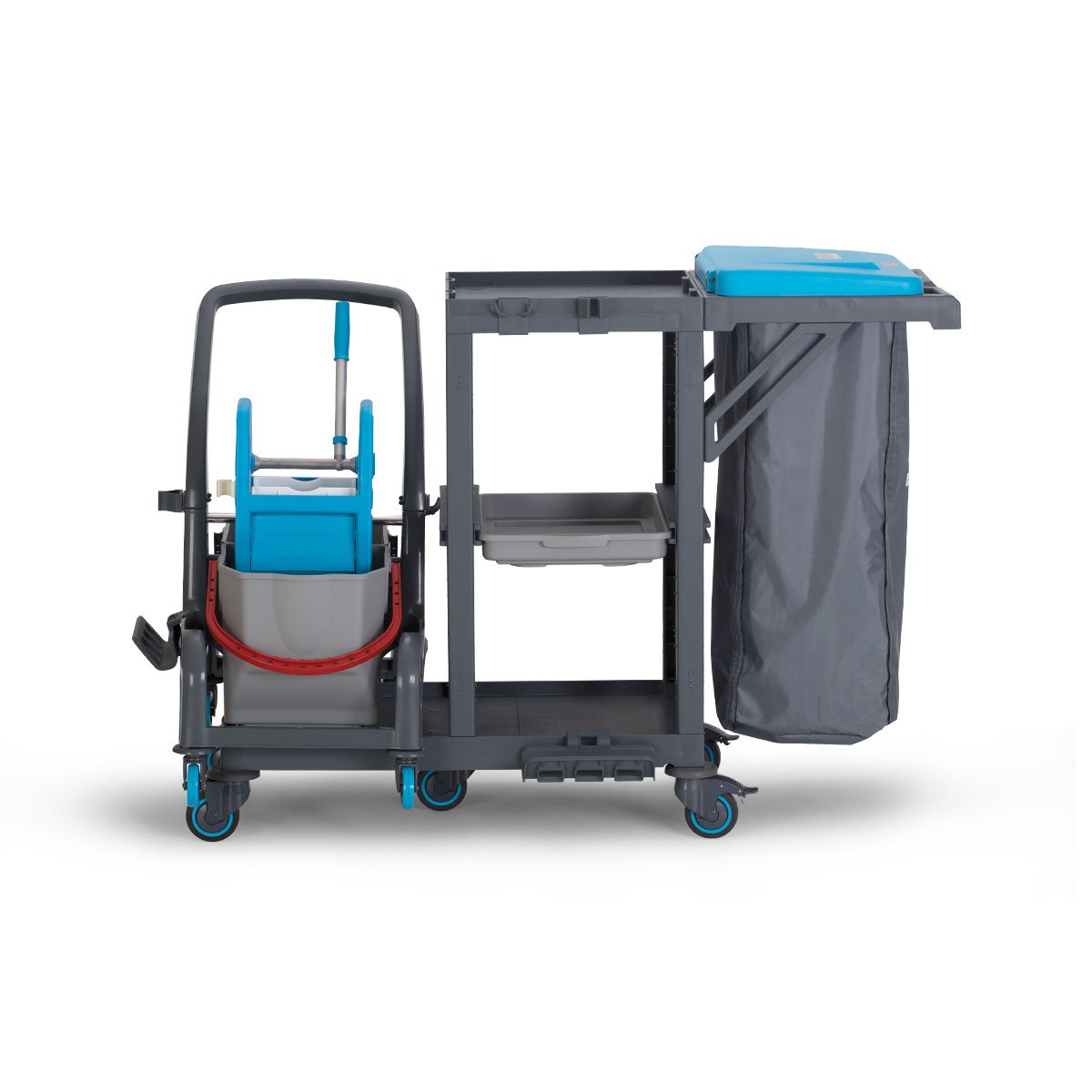 Suitable for cleaning operations in shopping malls, hospitals, schools, dormitories, factories, restaurants, hotels, and residences thanks to its practical and durable structure. Its silent, bumper-protected and braked wheels provide easy maneuverability and protection against impacts. Braked wheels also ensure stability on inclined surfaces. The modular and ergonomic design allows fast and efficient cleaning tasks.
