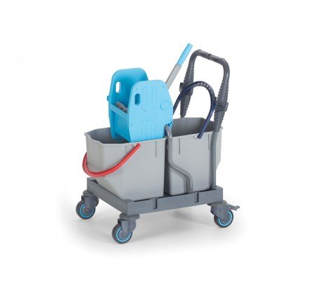 The module includes a 25 L & 18 L cleaning bucket, vertical press, mop holder, and accessory hanger. An optional accessory bucket can also be added.