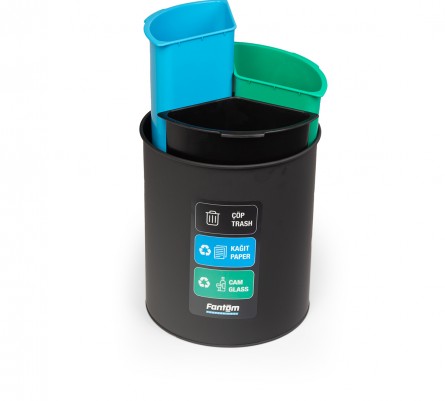 Used as an under-desk recycling bin with practical waste-sorting functionality in hotel rooms, hospital rooms, and offices.