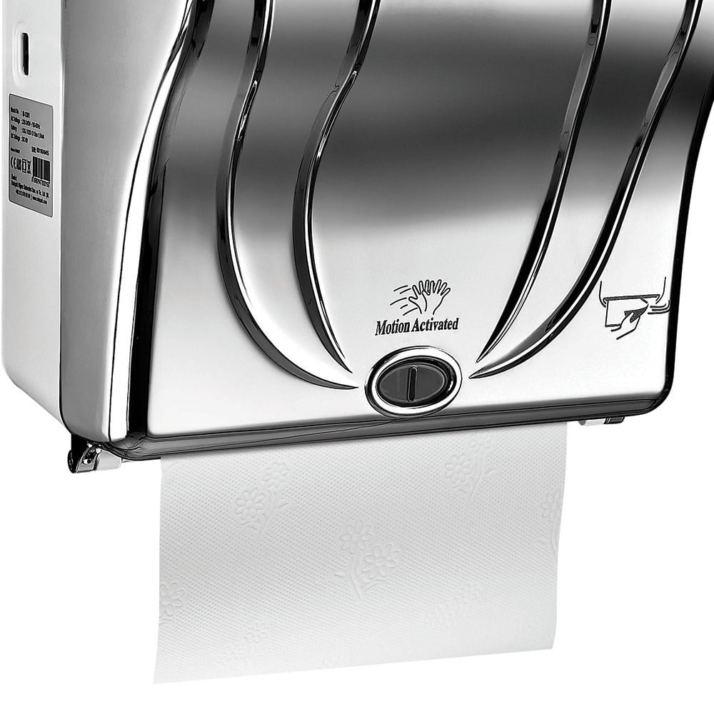 With its Autoswitch feature, the dispenser continues operating on battery power when electricity is unavailable. Its automatic paper-length adjustment system significantly reduces paper waste, making it highly economical in high-traffic environments.