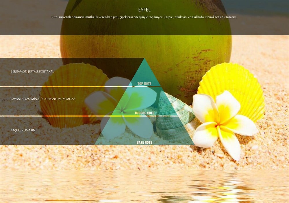 A refreshing and uplifting citrus blend crowned with the energetic scent of flowers. A striking and memorable aroma.